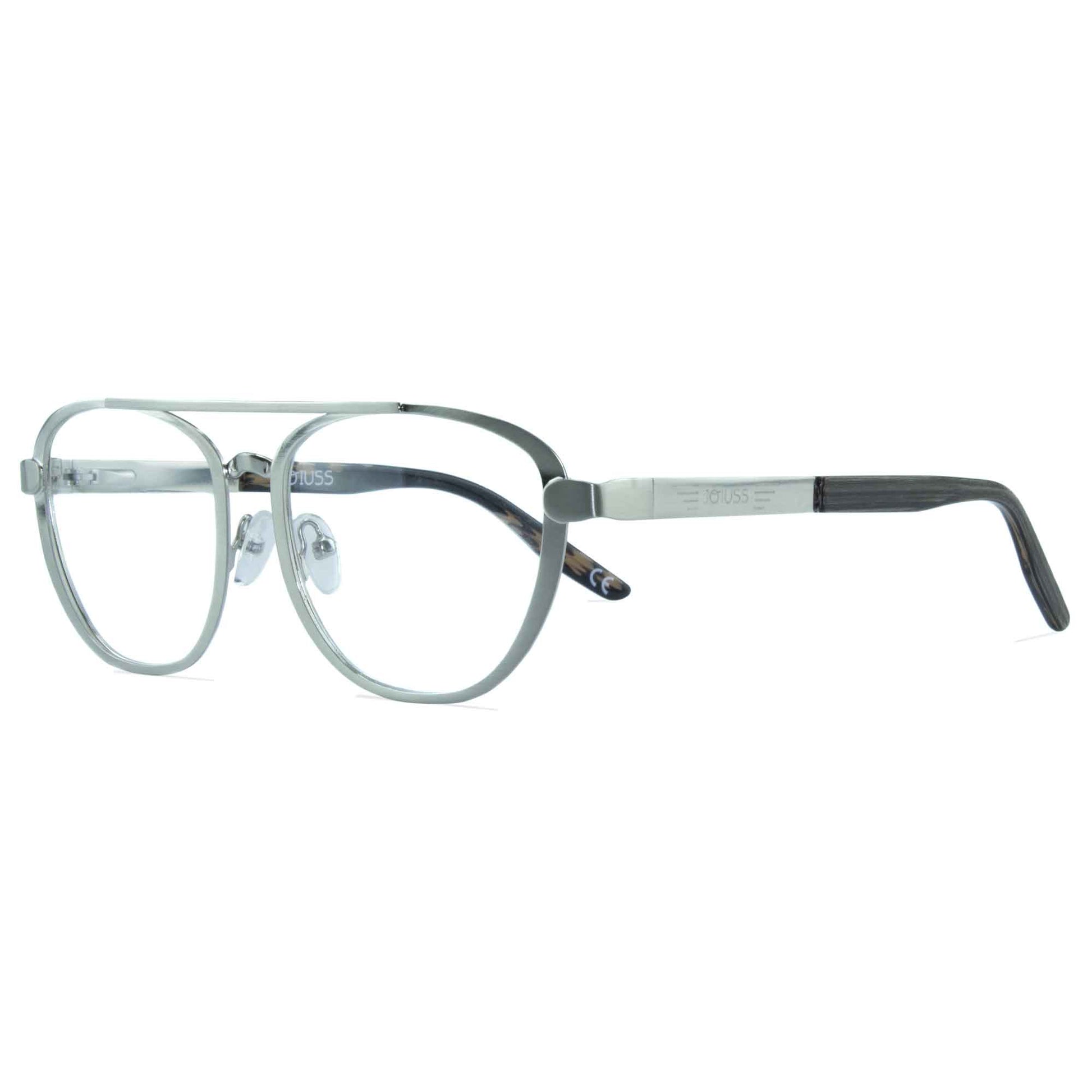 Features: Flexible sprung side arms, flat silver metal aviator style rims, inlaid gold foil JOIUSS™ brand label to both side arms.