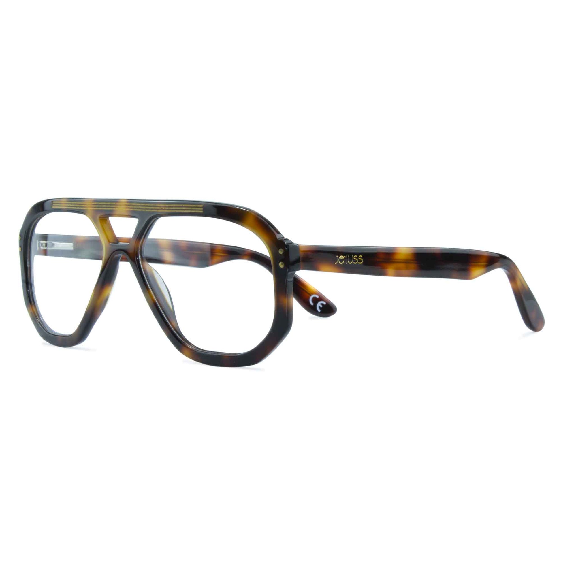 Features: Flexible sprung side arms, tortoiseshell frame with a gold metallic car grill decoration, inlaid gold foil JOIUSS™ brand label to both side arms.